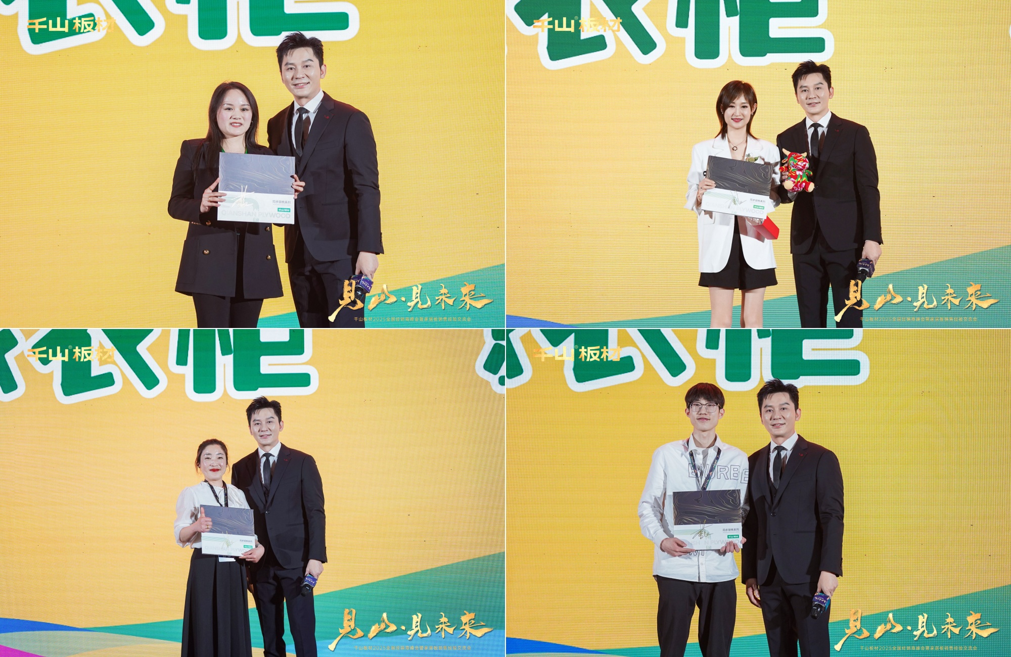 劉董為李晨先生授予“品質家居體驗官”,同時為十位在千山板材銷售領域表現卓越的經銷商授予了“品質家居推廣官”榮譽,不僅是對他們過去一年里在提升家居品質、推廣優質板材方面所做出杰出貢獻的肯定,也是對他們未來繼續引領家居潮流、傳遞品質生活的期待與鼓勵。