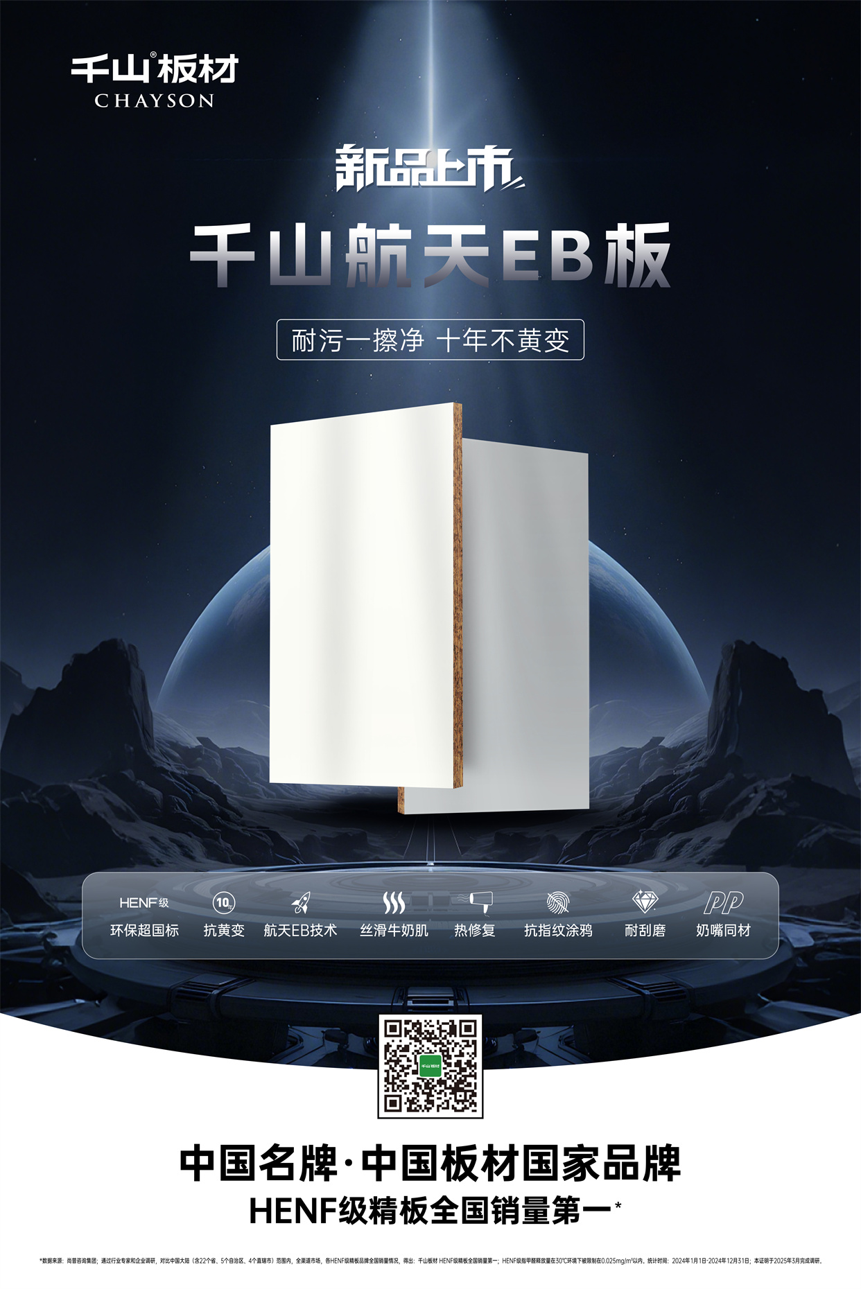 從微小零部件涂層的精細處理,到大型航天飛行器復合材料的高效制造,EB電子束固化技術憑借高效、環保、高能量密度等特性,已在航天、汽車、家居等多個領域實現突破性應用。千山板材汲取航天科技靈感,重磅推出新一代高端門板產品——千山航天EB板,以“黑科技”工藝,將卓越的物理性能與高級質感完美融合,為我們的家居空間披上“高